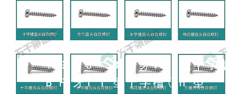 (鐵板牙自攻螺絲) B-2: Plastic Tapping Screw. (塑膠用,自攻螺絲) C: Wooden Screw : 木工螺絲 D: Drywall Screw :水泥墻螺絲 E: Self Drilling Screws鉆尾螺絲(不銹鋼鉆尾螺絲,復合材料鉆尾螺絲) F:膨脹螺絲,四片膨脹螺絲又